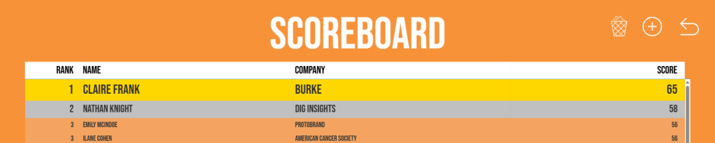 A big well done as well to our runners-up, Nathan Knight from Dig Insights (58), Emily McIndoe from Protobrand (56), and Ilane Cohen from American Cancer Society (56).