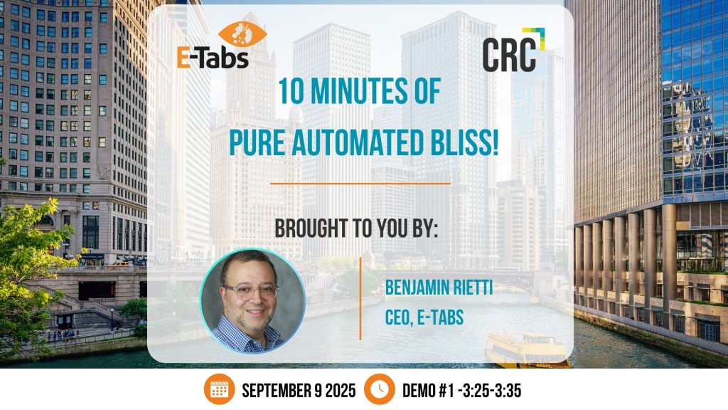 Join E-Tabs in Chicago from September 9–11 as we showcase how automation is shaping the future of insights. From cutting reporting times to delivering flawless accuracy, we’ll demonstrate tools that transform how you work. Don’t miss the chance to see our innovations in action – we can’t wait to connect with you at the Insights Association CRC!