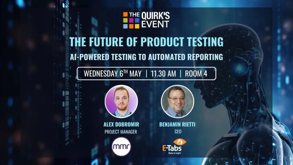 In this Quirk’s London speaker session, Alex Dobromir, Project Manager of Product Hub at MMR joins Benjamin Rietti, CEO of E-Tabs, to explore how AI-powered product testing and automated reporting are coming together to transform research workflows.